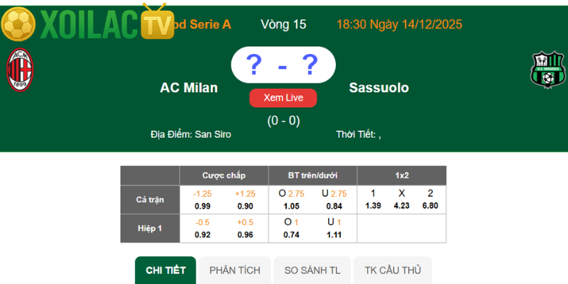 Trận đấu giữa Milan vs Sassuolo được Xoilac hứa hẹn sẽ là màn trình diễn sức mạnh của đội chủ nhà trước đối thủ ưa thích. Với phong độ cao tại Serie A cùng lợi thế sân bãi, Rossoneri là lựa chọn đáng tin cậy ở cả kèo châu Á và châu Âu. Bên cạnh đó, kèo Tài cũng là một kênh đầu tư hấp dẫn khi hàng công hai đội đang chơi tốt.